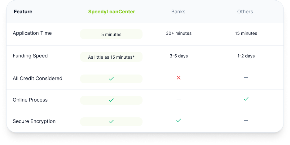 We know that when you need funds, time is of the essence. Our platform is designed to process your request and connect you with potential lenders in just minutes.